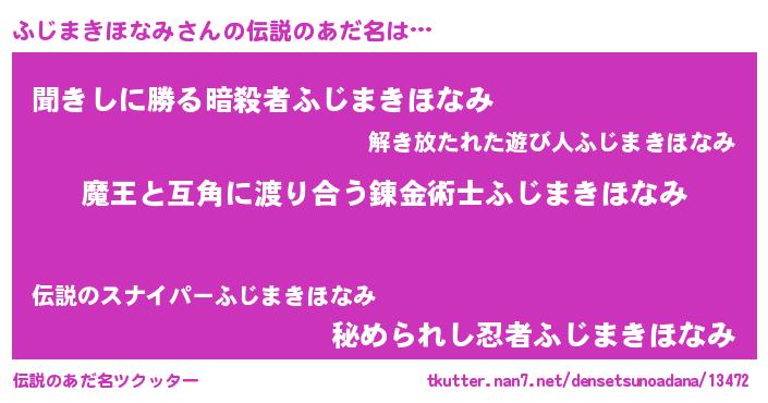 | 意味不明あだ名 | 『住所不定無職ふじまきほなみ(93歳)』 |