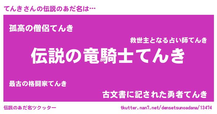 | ヒーロー風カッコイイあだ名 | 『スーパーテンキ』『黄金騎士テン』 |