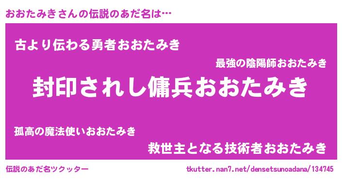 | 男性向けラノベタイトル風あだ名 | 『Re:おおたみきから始める異世界生活』 |