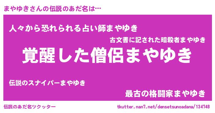 | ヘコむあだ名 | 『まやっぺ』『牛乳』『まやゆき(笑)』 |