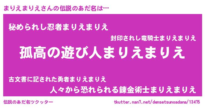 | 意味不明あだ名 | 『住所不定無職まりえまりえ(71歳)』 |