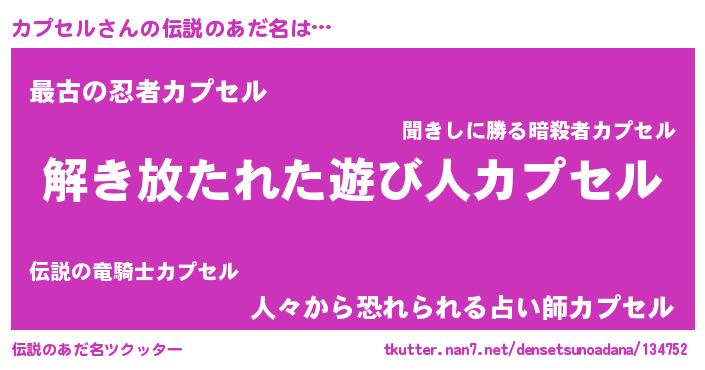 | 男性向けラノベタイトル風あだ名 | 『ダンジョンにカプセルを求めるのは間違っているだろうか』 |