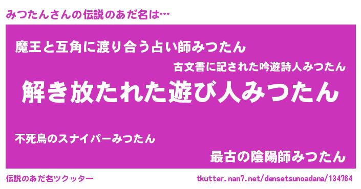| 意味不明あだ名 | 『とにかく怪しいみつたん』 |