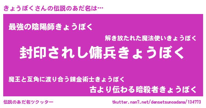 | 胡散臭い通販商品みたいなあだ名 | 『あなたにだけ特別に提供する限定10本のレアな日本酒…その名も「きょうぼく」』 |