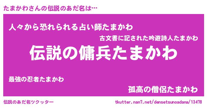 | ヒーロー風カッコイイあだ名 | 『スーパータマカワ』『幻影騎士タマ』 |