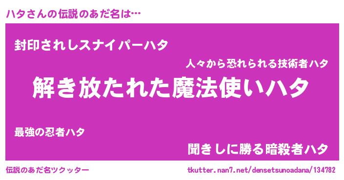 | 男性向けラノベタイトル風あだ名 | 『ハタに滅ぼされるだけの簡単なお仕事です』 |