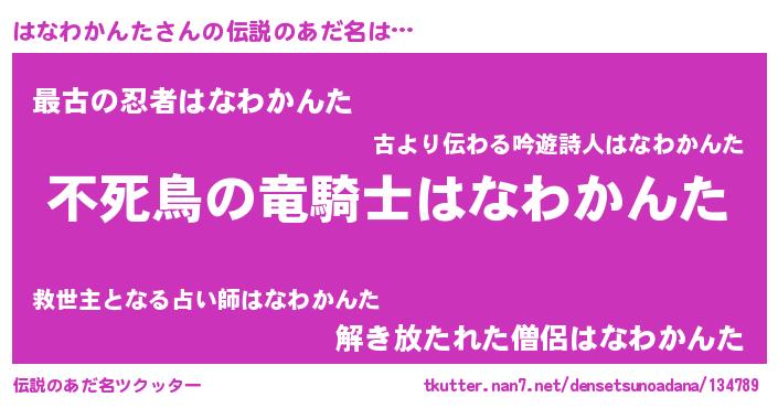 | 男性向けラノベタイトル風あだ名 | 『この素晴らしい世界にはなわかんたを!』 |