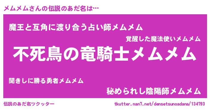 | ヒーロー風カッコイイあだ名 | 『スーパーメムメム』『愛の使者メムメム』 |