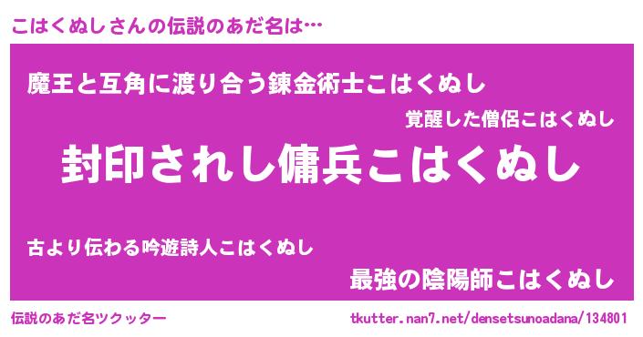 | ヒーロー風カッコイイあだ名 | 『スーパーコハクヌシ』『天弓騎士コハ』 |