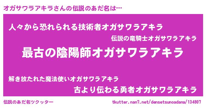 | ファンタジー風あだ名 | 『エターナルオガサワラアキラー』 |