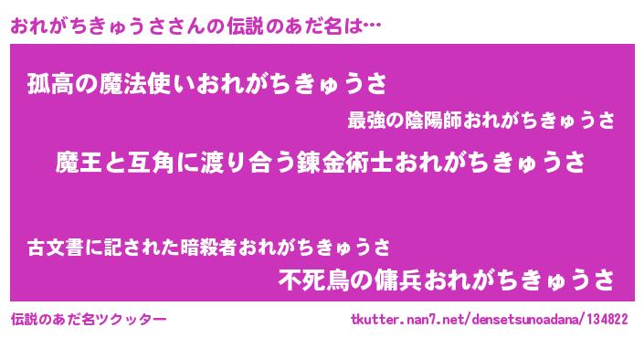 | 女子向けラノベタイトル風あだ名 | 『おれがちきゅうさ恋絵巻』 |