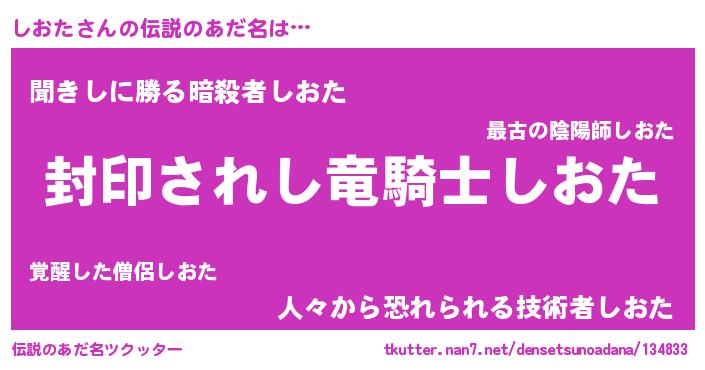 | 意味不明あだ名 | 『ペロリンしおた』『永久保存しおた』 |