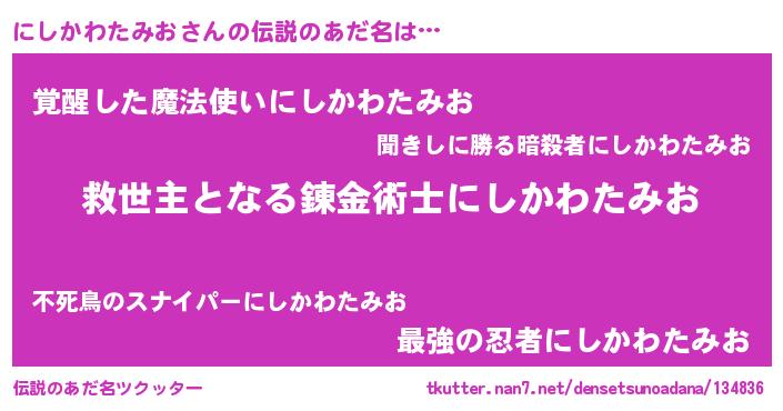 | 肩書あだ名 | 『にしかわたみおプロデューサー』 |