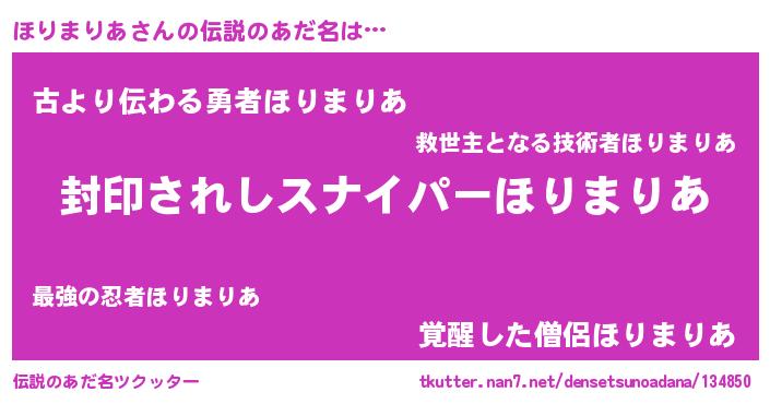 | 男性向けラノベタイトル風あだ名 | 『ほりまりあ~年齢イコール彼女いない歴の魔法使い~』 |