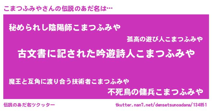 | 意味不明あだ名 | 『永久保存こまつふみや』 |