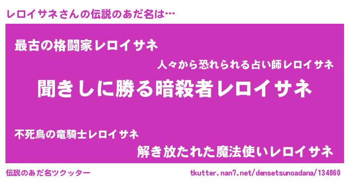| 男性向けラノベタイトル風あだ名 | 『レロイサネという概念が存在しない退屈な世界 』 |