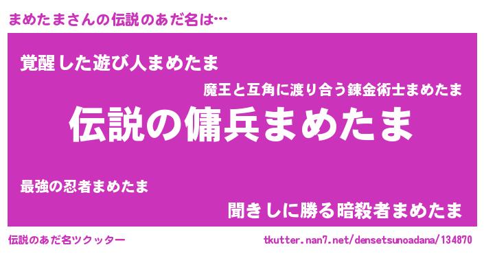 | ヒーロー風カッコイイあだ名 | 『スーパーマメタマ』『天弓騎士マメ』 |