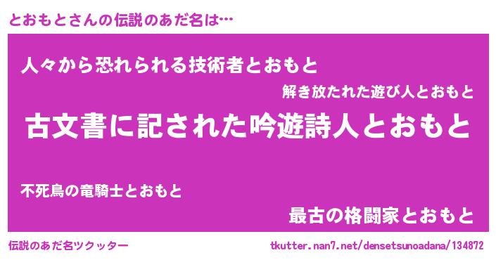 | 意味不明あだ名 | 『住所不定無職とおもと(13歳)』 |