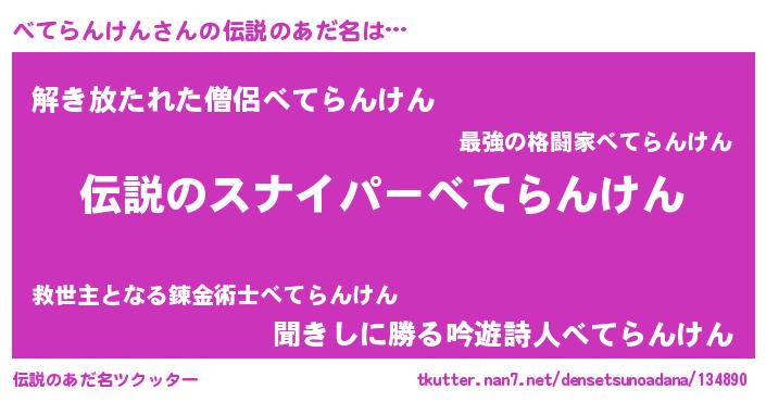 | 胡散臭い通販商品みたいなあだ名 | 『必ず成功する霊験あらたかなお札…その名も「べてらんけん」』 |