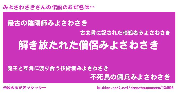 | 意味不明あだ名 | 『とにかく怪しいみよさわさき』 |