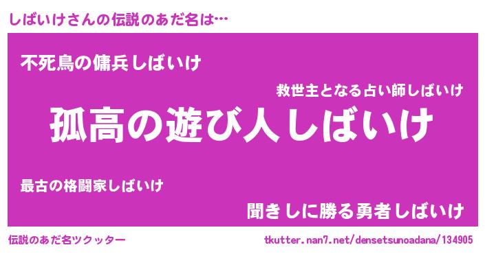 | ヒーロー風カッコイイあだ名 | 『暗黒騎士シバ』『スーパーシバイケ』 |