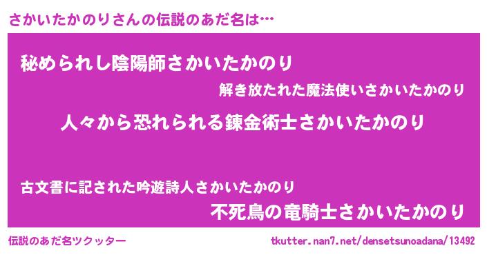 | 意味不明あだ名 | 『自称さかいたかのり』 |