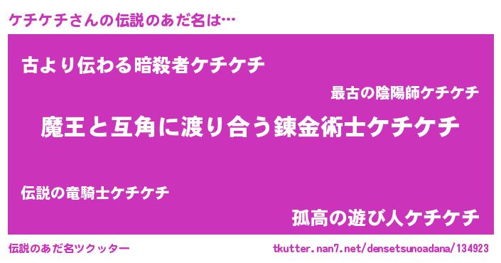 | ヒーロー風カッコイイあだ名 | 『慈愛の使者ケチケチ』『ネオケチケチ』 |