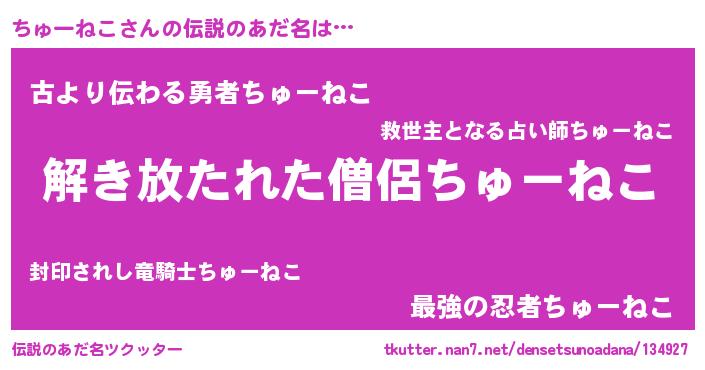 | ヒーロー風カッコイイあだ名 | 『サイバー戦士チューネコ』 |