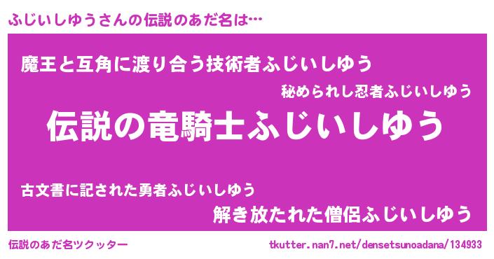| ヒーロー風カッコイイあだ名 | 『スーパーフジイシユウ』『銀牙騎士フジ』 |