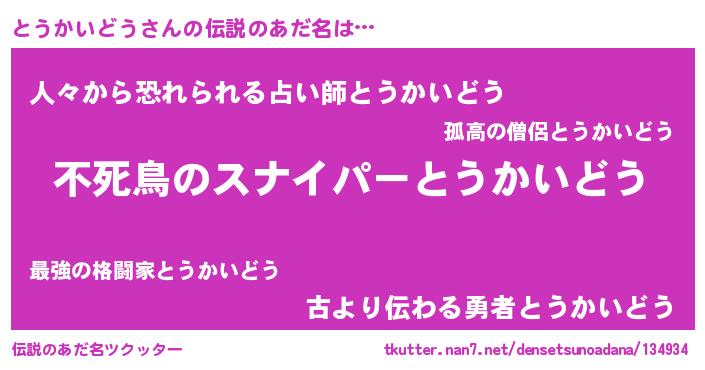 | ヒーロー風カッコイイあだ名 | 『スーパートウカイドウ』『仮面トウダー』 |