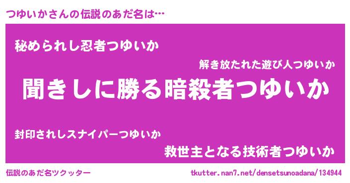 | 胡散臭い通販商品みたいなあだ名 | 『絶対に幸福をもたらす健康食品…その名も「つゆいか」』 |
