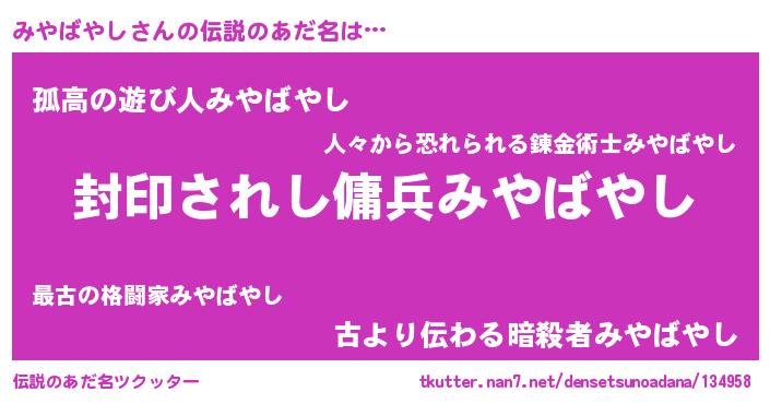 | 意味不明あだ名 | 『住所不定無職みやばやし(14歳)』 |