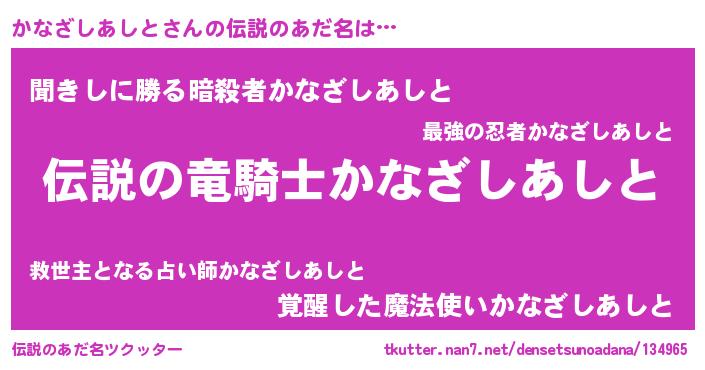| ヒーロー風カッコイイあだ名 | 『スーパーカナザシアシト』 |