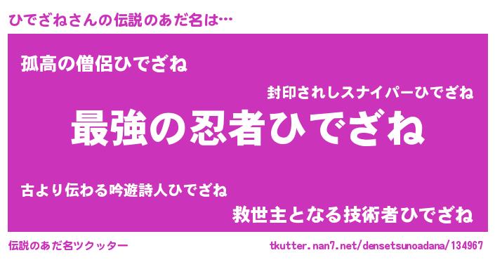 | 男性向けラノベタイトル風あだ名 | 『ひでざね~年齢イコール彼女いない歴の魔法使い~』 |
