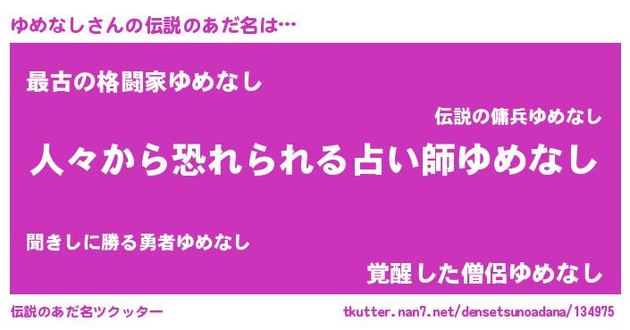 | ヒーロー風カッコイイあだ名 | 『友情の使者ゆめなし』『炎刃騎士ユメ』 |