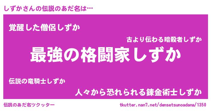 | 意味不明あだ名 | 『しずかフォーエバー』『自称しずか』 |