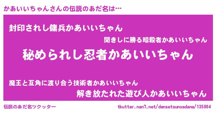 | 意味不明あだ名 | 『自称かあいいちゃん』 |