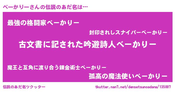 | 意味不明あだ名 | 『永久保存べーかりー』 |