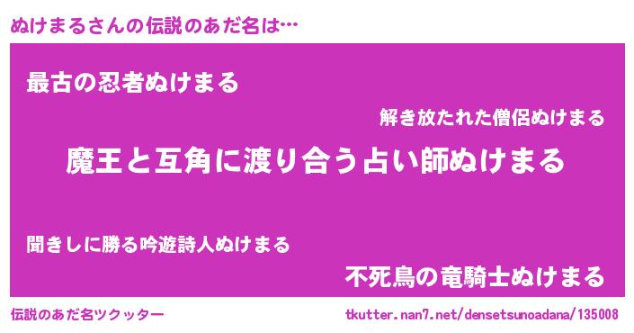 | ヒーロー風カッコイイあだ名 | 『最強戦士ヌケマル』『スーパーヌケマル』 |