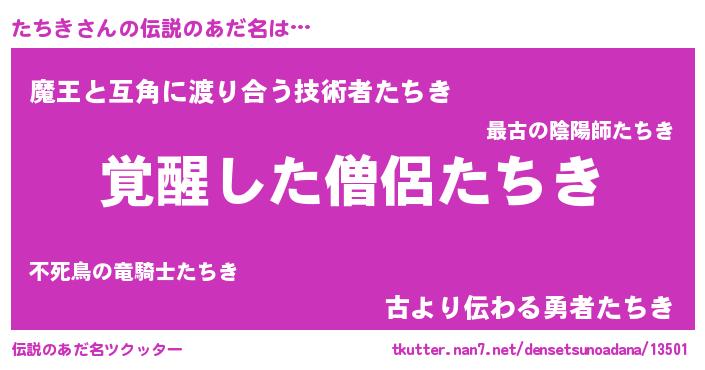 | 女子向けラノベタイトル風あだ名 | 『たちき様がみてる』『たちき恋絵巻』 |