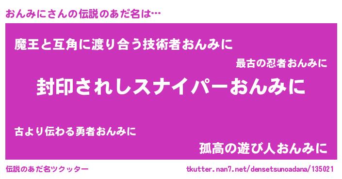 | 胡散臭い通販商品みたいなあだ名 | 『億万長者になれる霊験あらたかなお札…その名も「おんみに」』 |