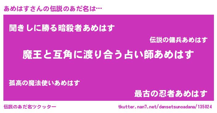 | 意味不明あだ名 | 『自称あめはす』『永久保存あめはす』 |