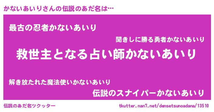 | ヒーロー風カッコイイあだ名 | 『慈愛の使者かないあいり』 |