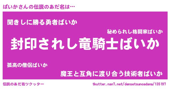 | 胡散臭い通販商品みたいなあだ名 | 『億万長者になれるブレスレット…その名も「ばいか」』 |