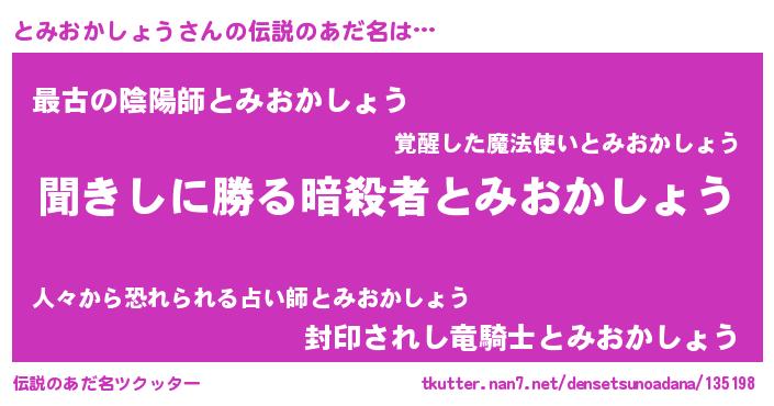| 意味不明あだ名 | 『永久保存とみおかしょう』 |