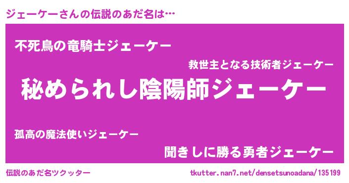 | ファンタジー風あだ名 | 『ゼジェトゥ』『エターナルジェーケーー』 |