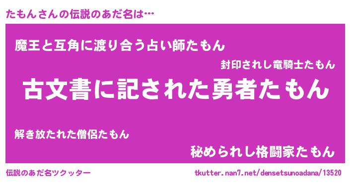 | ヘコむあだ名 | 『たもん(震え声)』『なまこ酢』 |