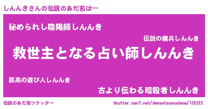 | ヒーロー風カッコイイあだ名 | 『天空の使者しんんき』『仮面シンダー』 |