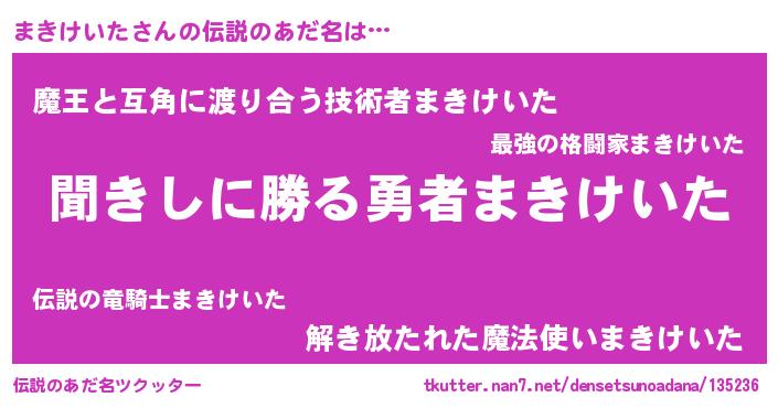 | 意味不明あだ名 | 『永久保存まきけいた』『自称まきけいた』 |