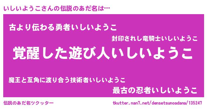 | ポケモン風あだ名 | 『イーシイ』『ヒイシイヨウコ』 |